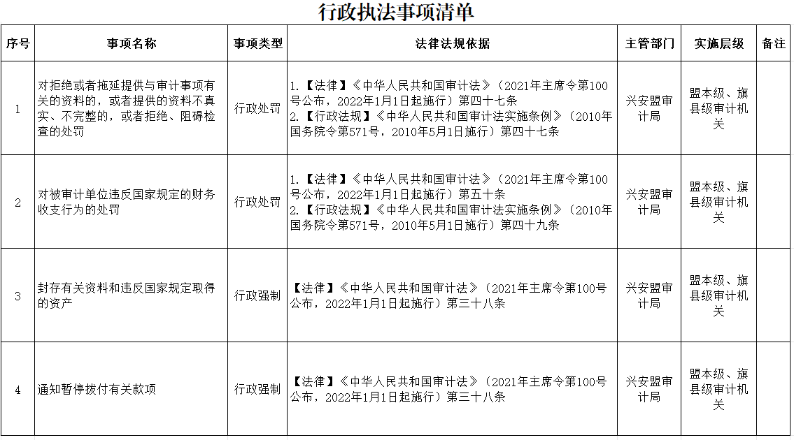兴安盟审计局行政执法事项清单
